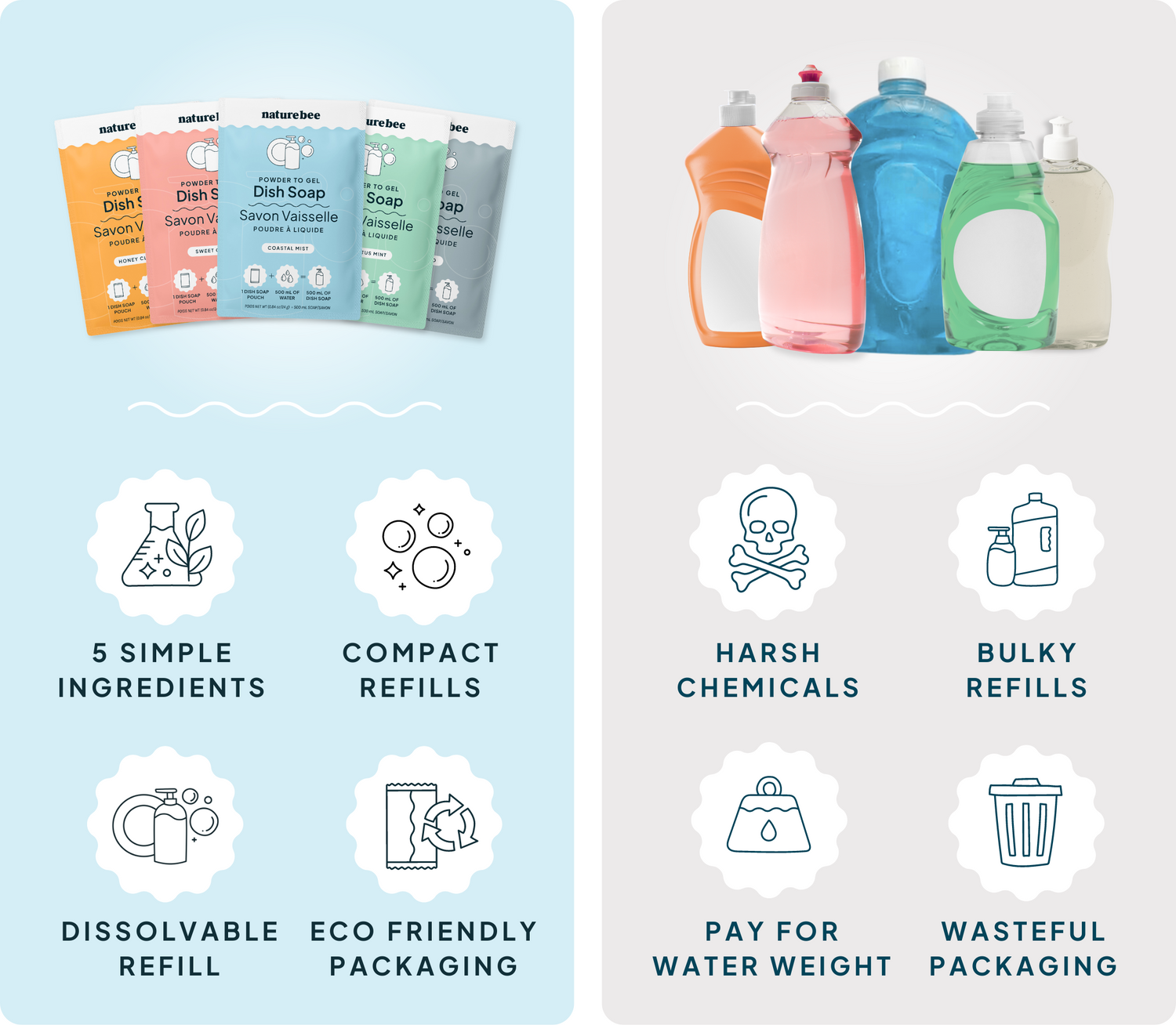 Did you know only 9% of plastic gets recycled? Every packet of powder to gel dish soap diverts a plastic soap jug from going into the landfill!